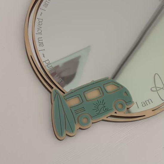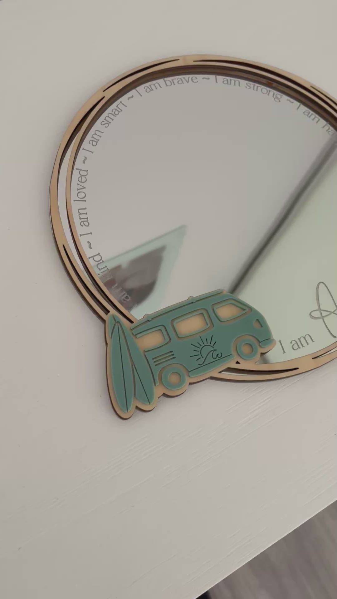 Our handcrafted affirmation mirrors are designed to help children see their reflection and their worth. Each one features empowering “I am” affirmations engraved into the back of premium mirror acrylic for a flawless front finish.