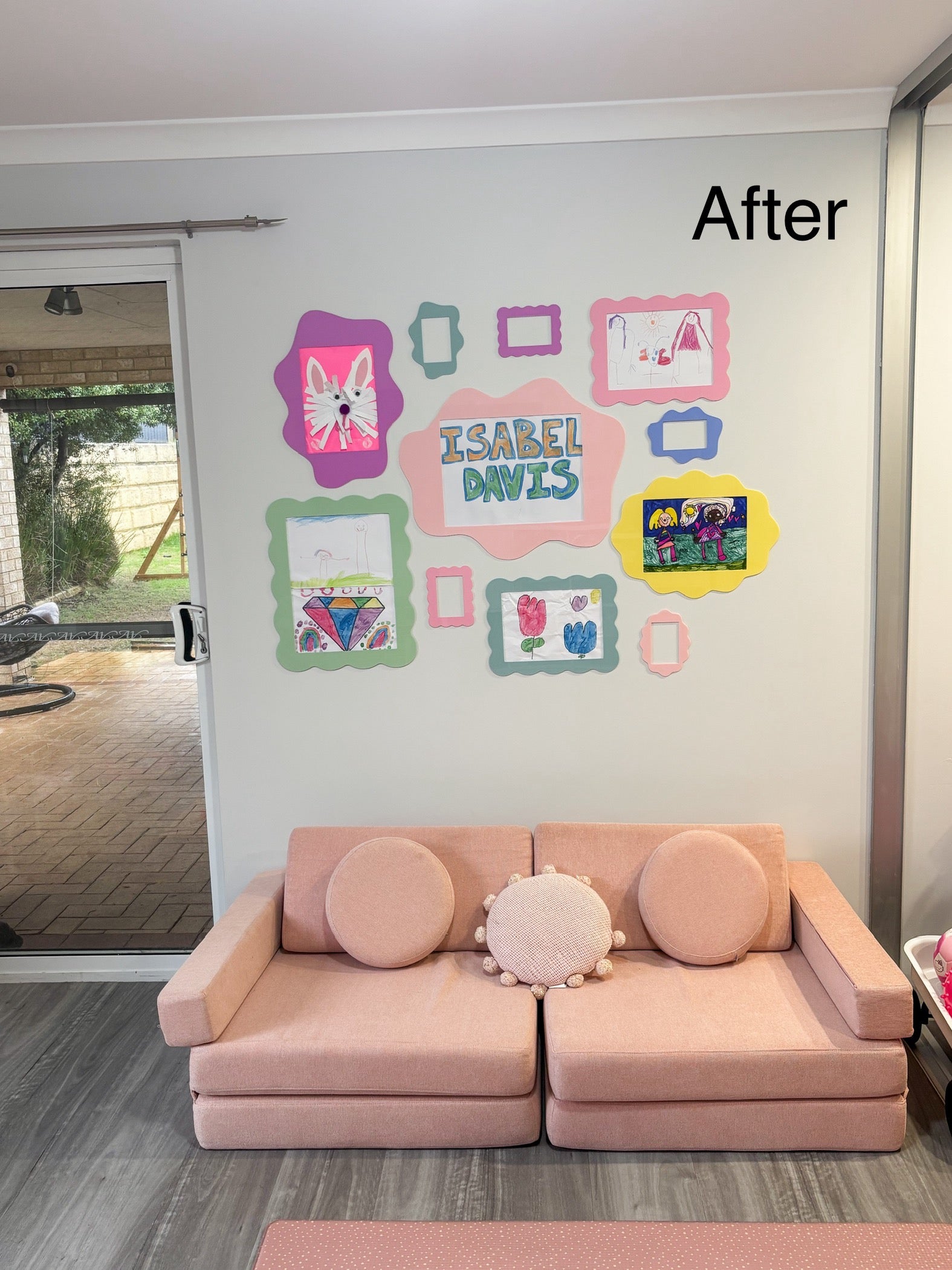 Please Note : These frames are just for decoration – not toys! Be sure to attach them securely and keep out of reach of little hands. We recommend using tape and Blu Tack as shown. Creations by Kimmi isn’t responsible for any damage or accidents from incorrect use.