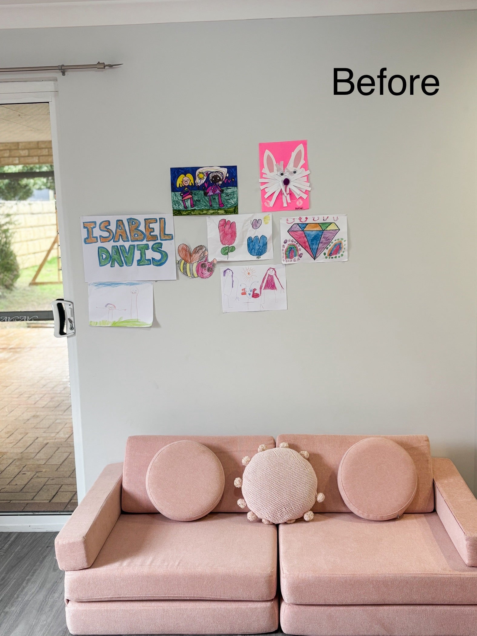 They’re super easy to use, just pop your artwork in with a couple of pieces of tape on the back, then use Blu-Tack to stick the frame to the wall. Done!