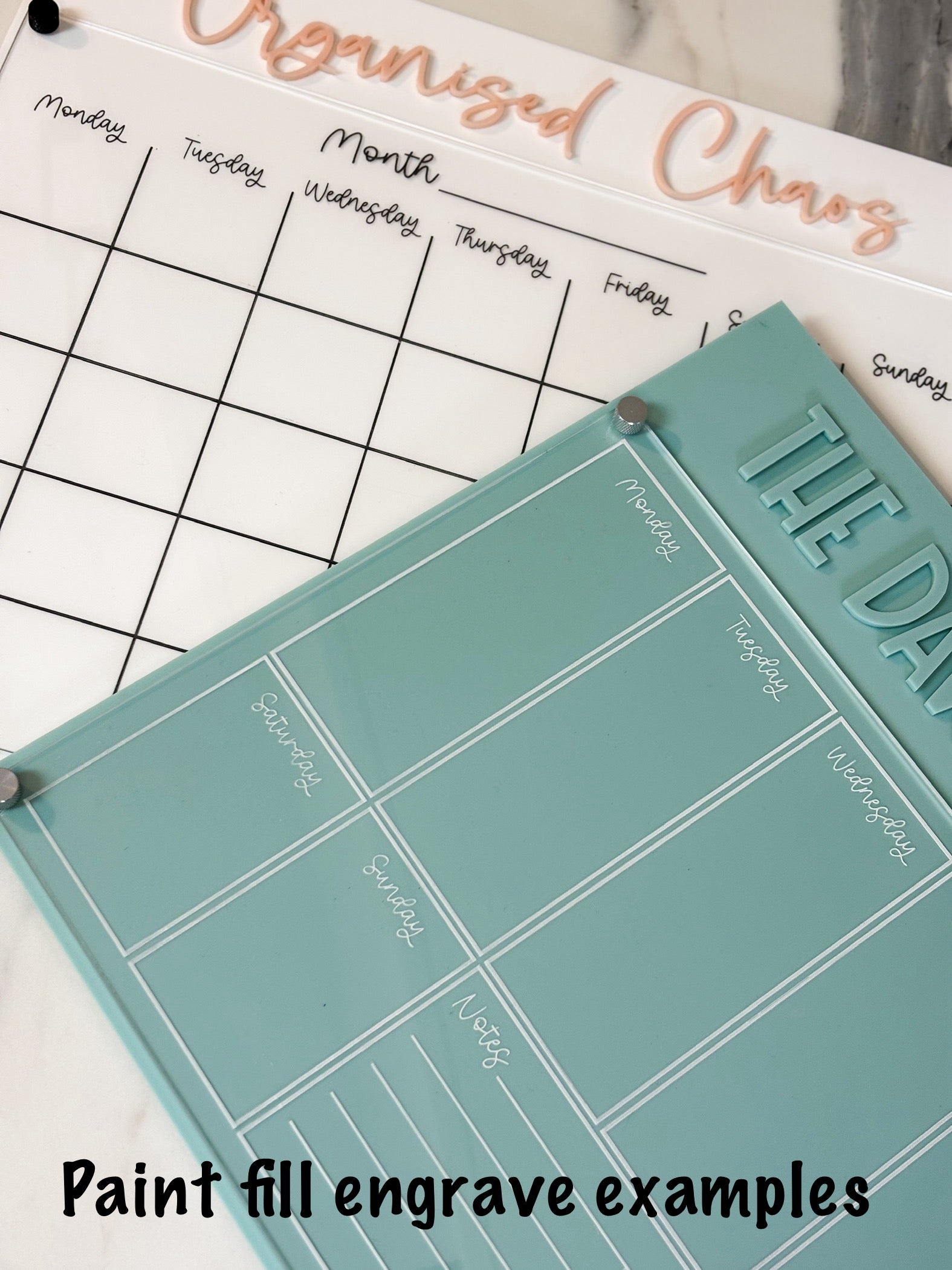 Our planners have had a little glow up! Now with the option of white or black paint infill on the engrave to help make the details stand out!
